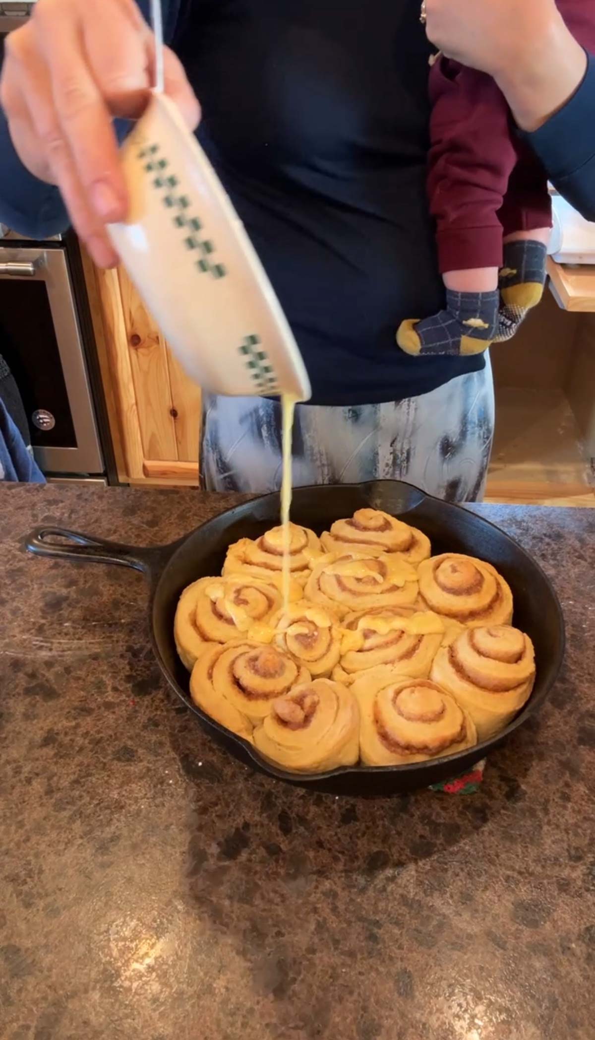 You can also freeze the cinnamon rolls at this point, and take them out of the freezer to raise and bake later on.