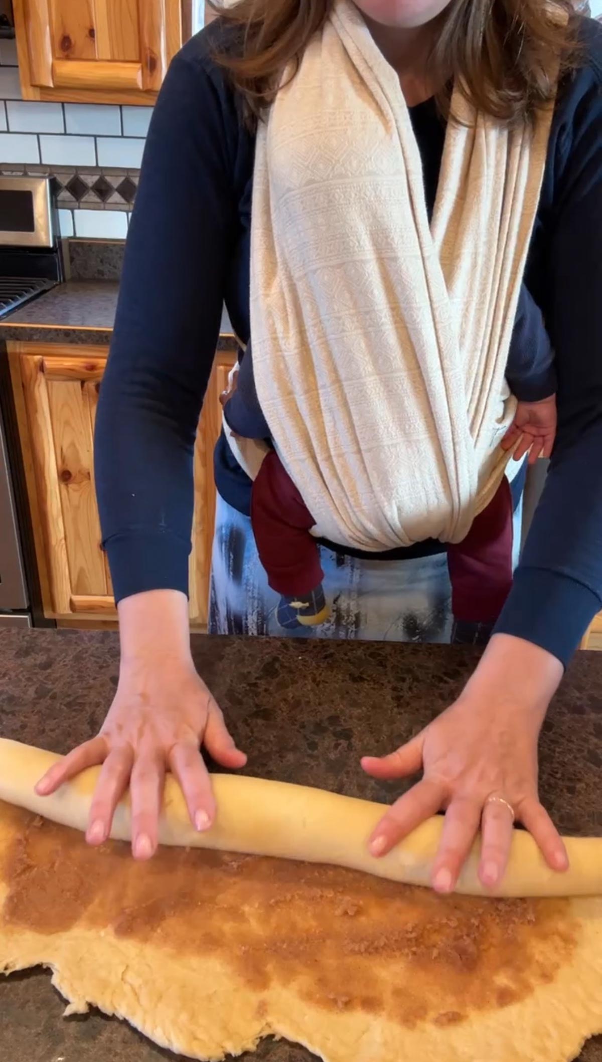 - Roll up dough, beginning with the long end of the rectangle.